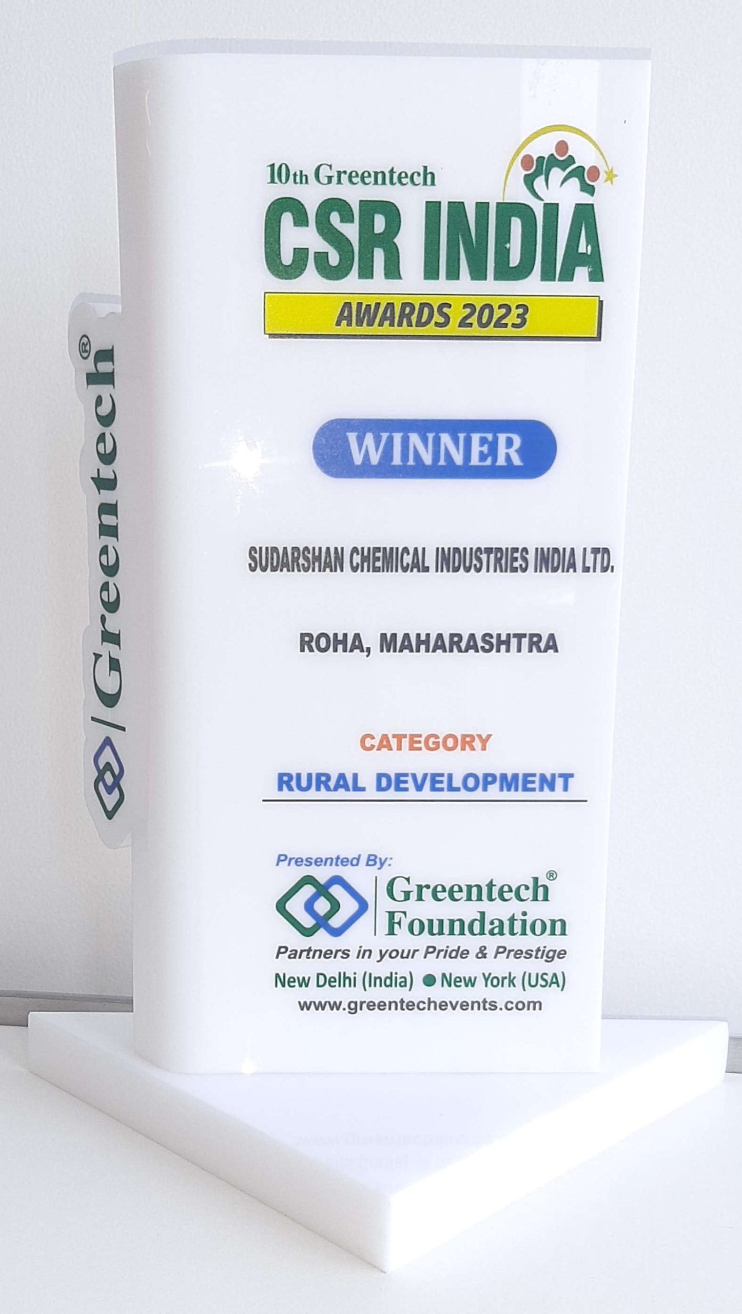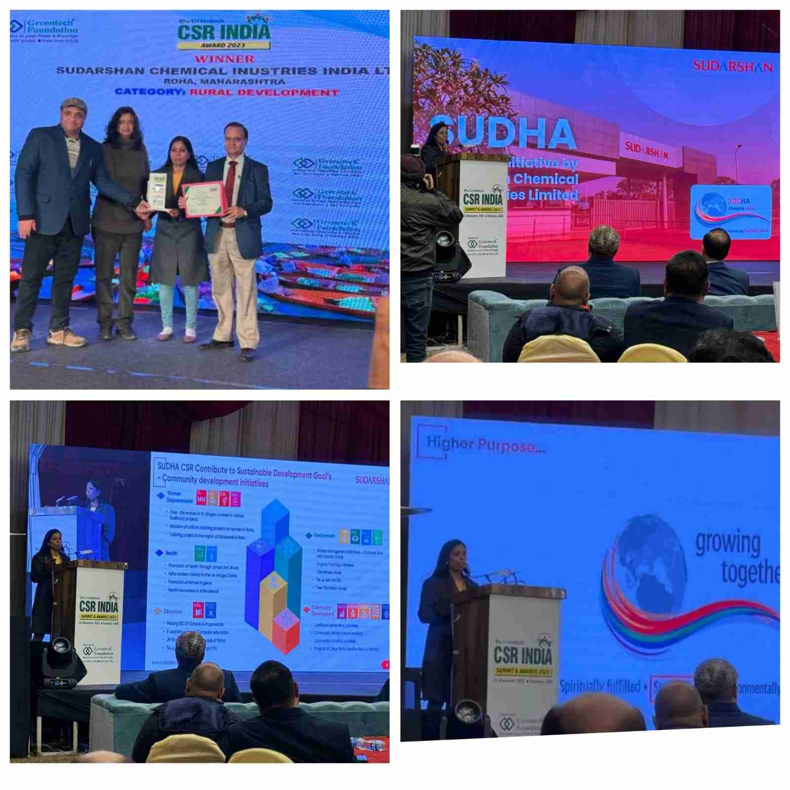 Sudarshan Chemical Industries Limited has received the prestigious Greentech CSR India Award. The award is received for SCIL’s approach towards Rural Development and presented by Srinagar Sub Divisional Magistrate, Suprident of Police (SP) at Sonmarg, J & K.