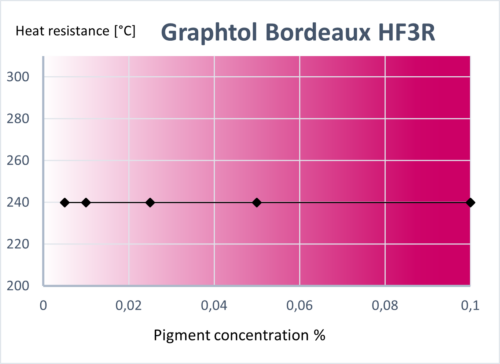 Graphtol Bordeaux HF3R is a brilliant bordeaux pigment with high color strength, good lightfastness and excellent dielectric properties. Particularly suitable for films, cable sheathing and as a replacement for thioindigo pigments.