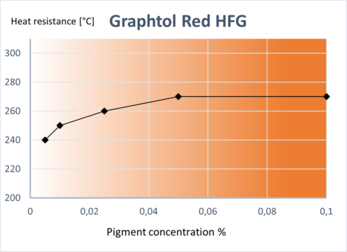 Graphtol Red HFG is a yellowish red pigment with good fastness properties. In combination with PV Fast Yellow HR 02 or PV Fast Yellow HGR it is possible to match brilliant orange color shades with good light fastness.
